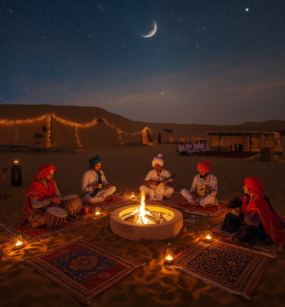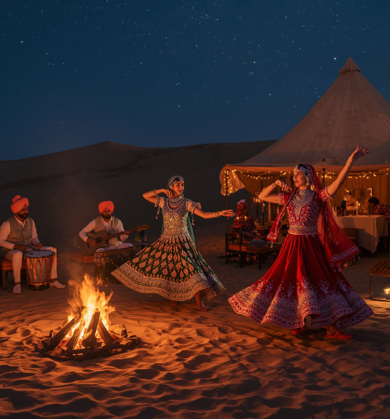 Under the starlit sky, with the warm glow of lanterns and the desert breeze around you, these dances are not just entertainment — they’re an intimate glimpse into the soul of Rajastha