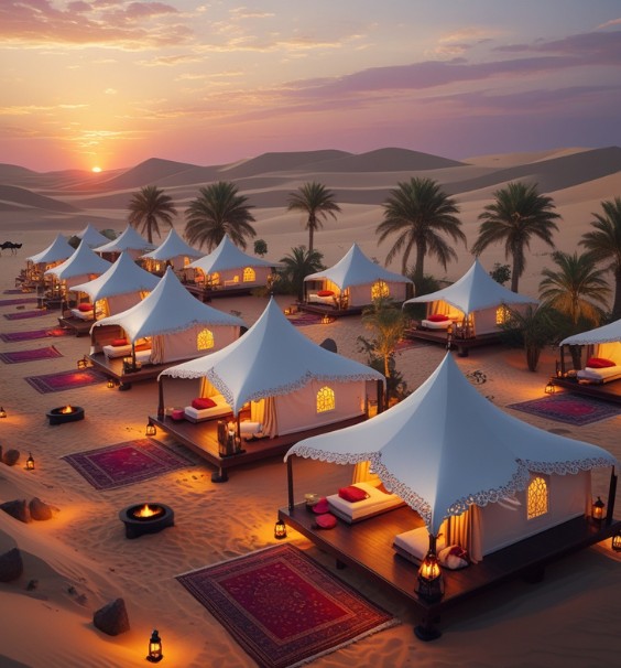 Imagine sleeping under a canopy of stars while enjoying all the comforts of a luxury hotel. Our glamping experience combines the rustic charm of desert camping with the indulgence of modern amenities.