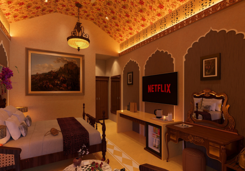 Rajwada Royale offers the charm of an ancient Rajput court infused with modern sophistication. The interiors are adorned with intricate décor, luxurious fabrics, and elegant furniture that transport you to an era of grandeur.